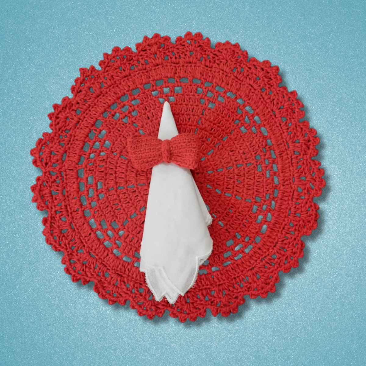 Sousplat redondo feito em crochê na cor vermelha, perfeito para compor uma mesa posta elegante e acolhedora. Com detalhes delicados e acabamento impecável, este sousplat adiciona um toque de sofisticação e charme às refeições, sendo ideal para ocasiões especiais ou para dar um toque único ao dia a dia. Uma peça artesanal que combina beleza e funcionalidade, destacando-se em decorações clássicas ou modernas.
